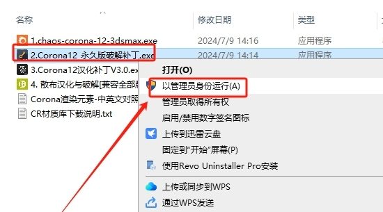 10、选择【2.Corona12-update-2_永久破解补丁.exe】鼠标右键以管理员身份运行