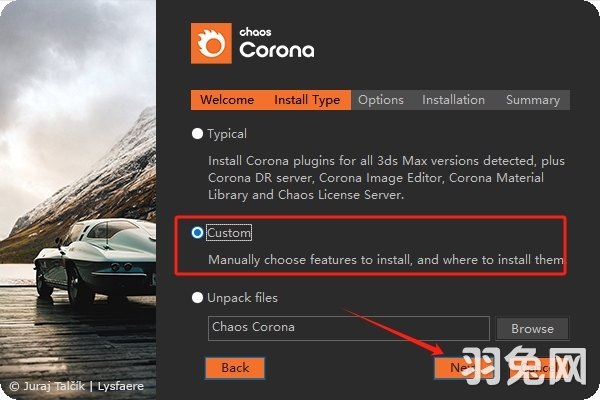 4、选择安装类型,勾选【Custom】,然后点击【Next】