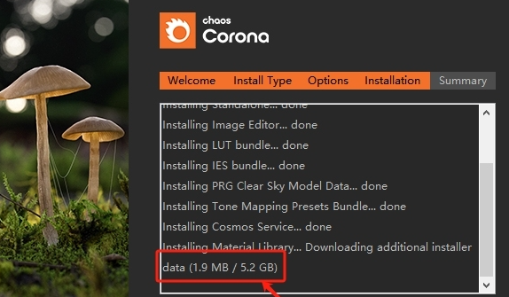 7、安装材质库中,如果你前面默认勾选【Material Library】的话,这里就会进行安装(安装时间可能有点久,请耐心等候);反之,没有勾选【Material Library】的话,本步骤就不会出现~