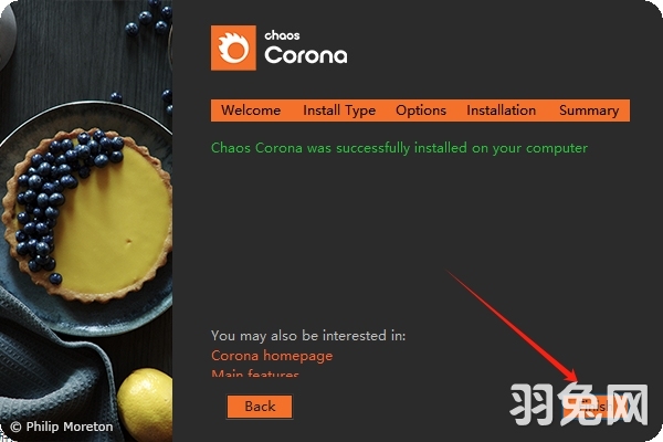 9、Corona成功安装到你的电脑上,点击【Finish】