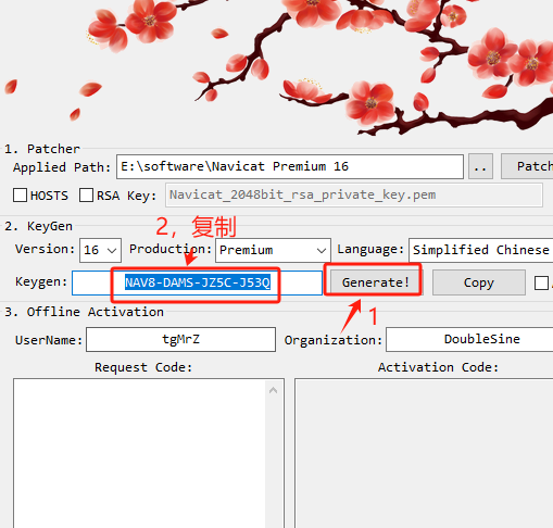 13、点击【Generate】,选中Keygen后的代码,鼠标右击选择【复制】(不要关闭此窗口继续后面的步骤)