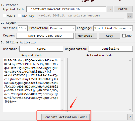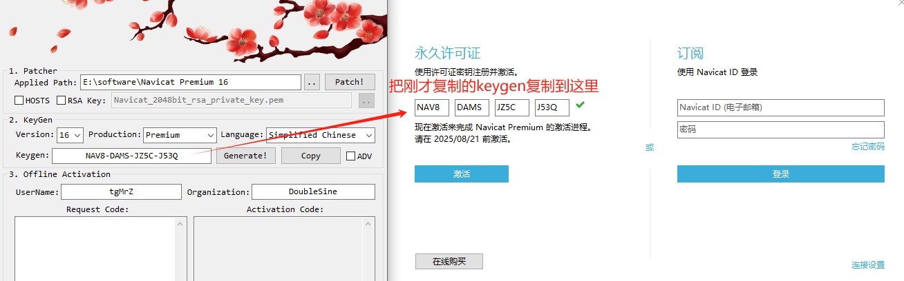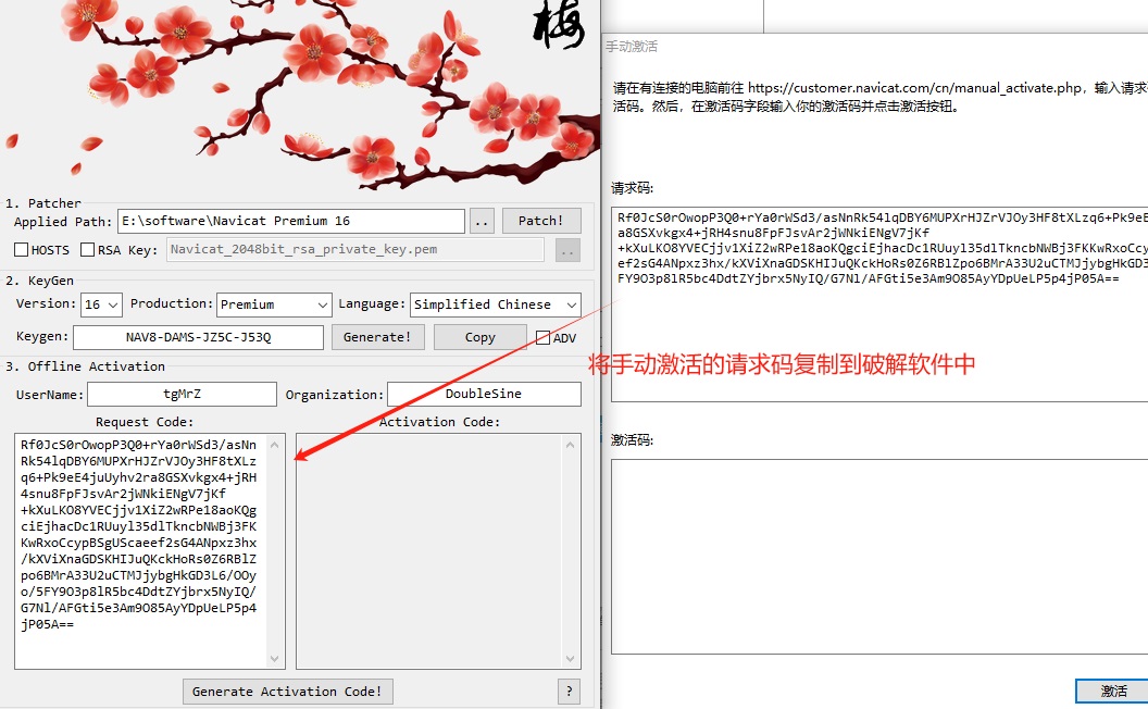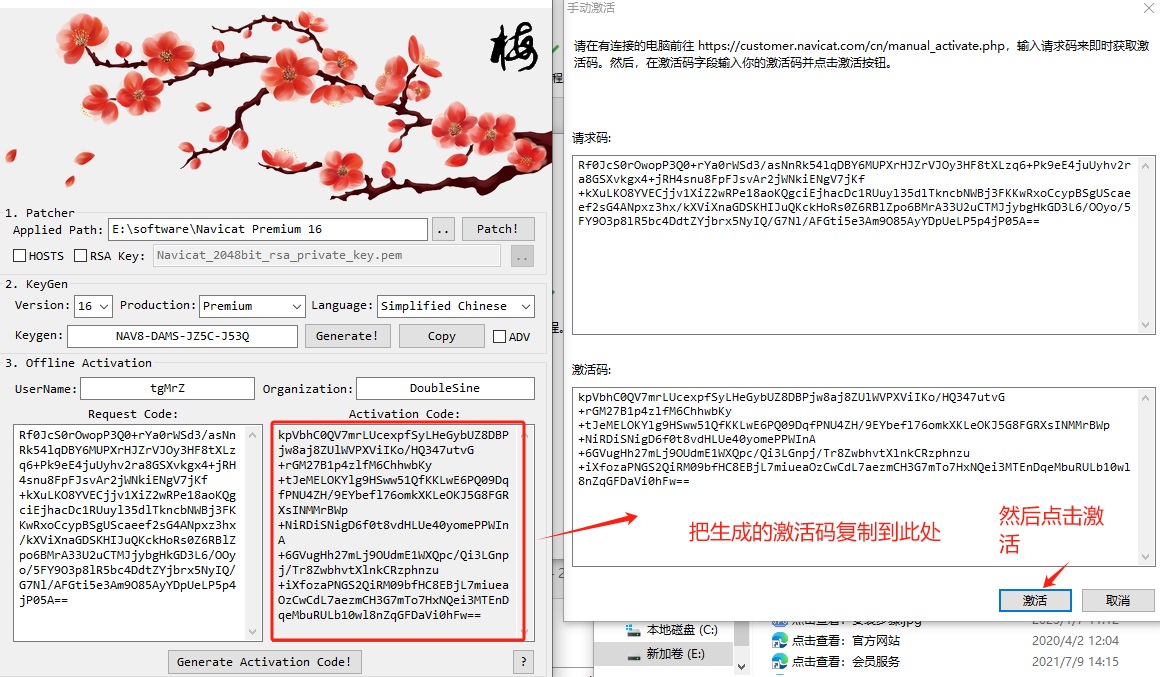 20、再把生成的【Activation Code】(激活码)复制,粘贴到激活码框中,然后点击【激活】