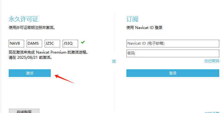 16、将步骤13复制的许可秘钥粘贴到下图所示位置,点击【激活】。