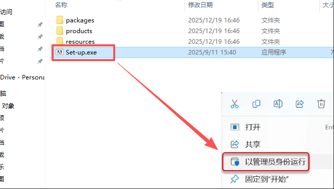 3、解压之后,右键点击Set-up文件,点击【以管理员身份运行】