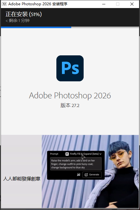 Photoshop 2026(版本 27.x)是 Adobe 推出的专业图像处理软件,核心升级围绕AI 生成能力、非破坏性编辑、工具效率与协作,大幅降低创作门槛。